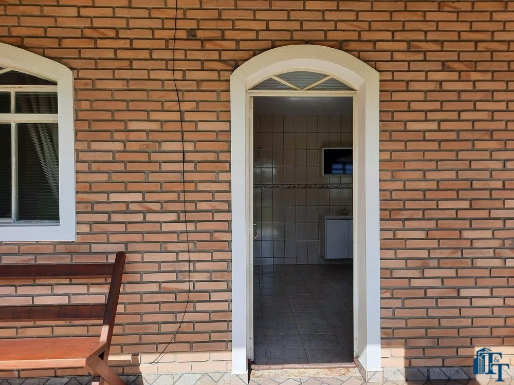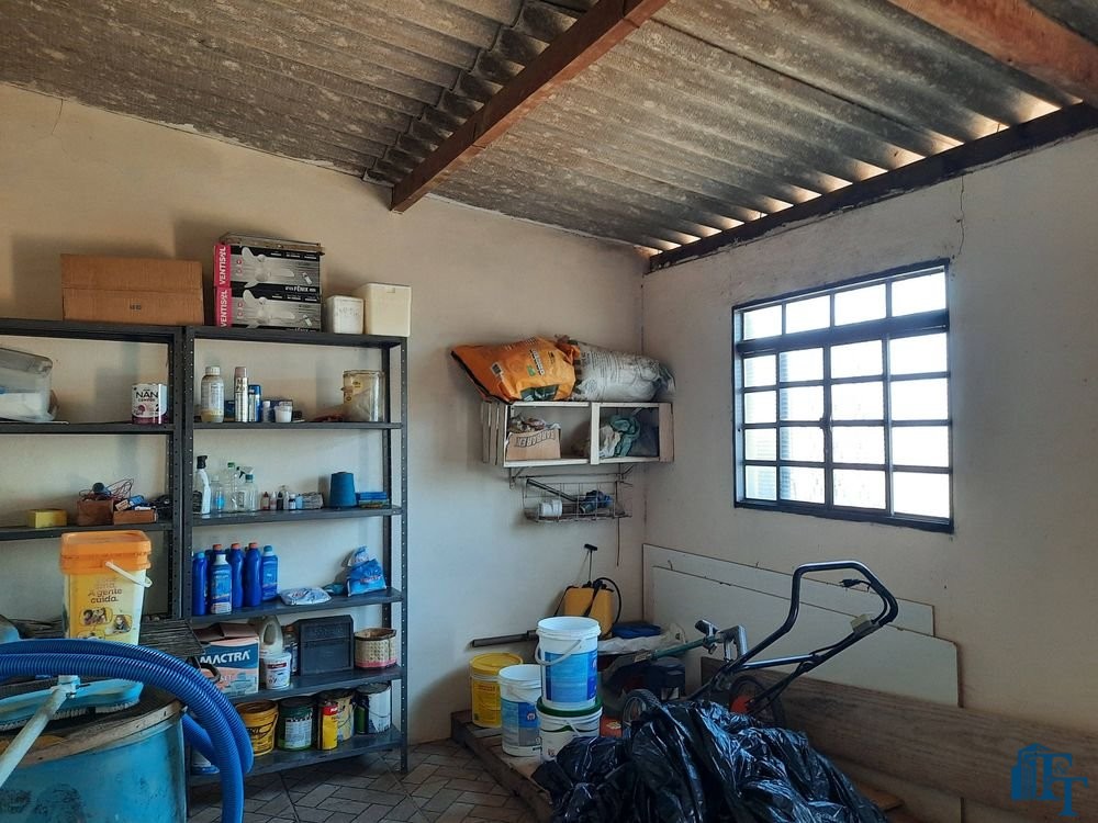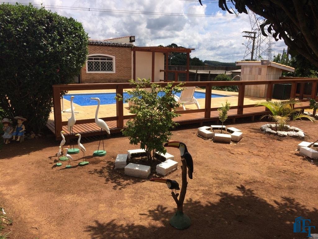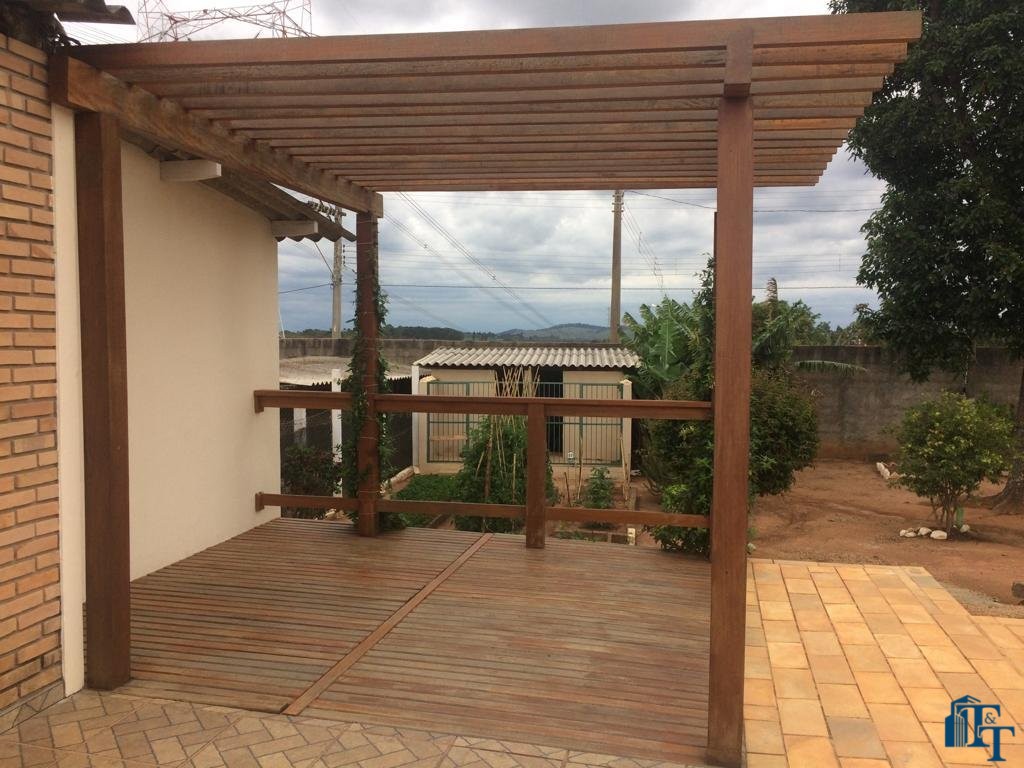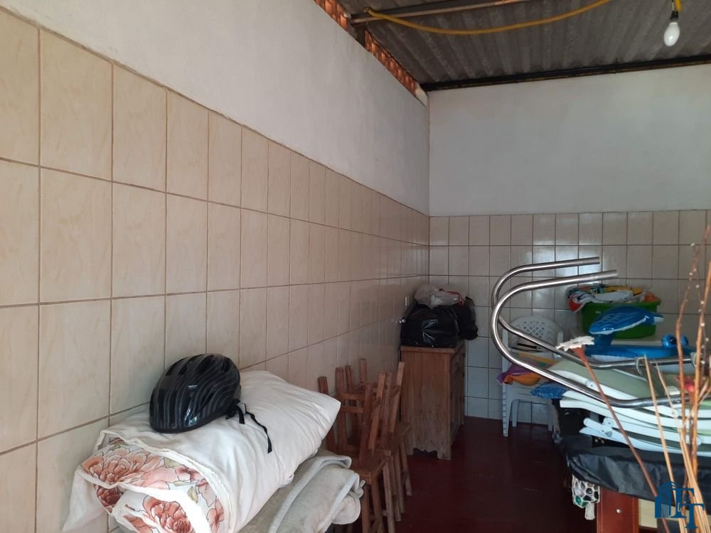 A casa é composta por 2 quartos, sala, cozinha, banheiro, lavanderia e garagem coberta para 4 carros. Na área externa (espaço coberto) e lazer, podemos observar pelas fotos uma linda área  gourmet com churrasqueira, pia e fogão a lenha, além de toda a mobília que será deixada no espaço, tais como: 2 mesas de madeira maciça e 4 bancos  do mesmo material, mesas de: pimbolim, ping-pong e bilhar, geladeira grande Eletrolux, 2 espreguiçadeiras brancas  (para serem utilizadas no espaço da piscina),  banheiro para atender as necessidades da área externa,  Juntamente com este espaço, contamos também com cômodos fechados: um que compõem a área gourmet e outro que atualmente está sendo utilizado como depósito. Neste espaço, temos os seguintes objetos: fogão industrial,  mesa com bancos em madeira de demolição, máquina musical (Karaokê com jukebox e um botijão de gás, suporte para panelas de ferro, com 8 panelas, gril giratório churrasqueira e guarda sol (Ombrelone).  Piscina 4 X 8, em azulejo decorado (espaço coberto para bomba), com um charmoso pergolado em madeira. O revestimento do piso da piscina é de pedra mineira e como extensão ainda tem um  charmoso deck em madeira, em toda a lateral da piscina.