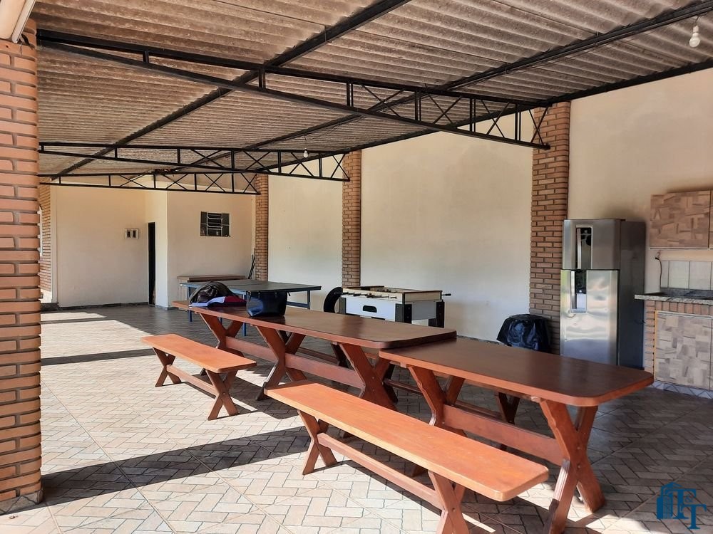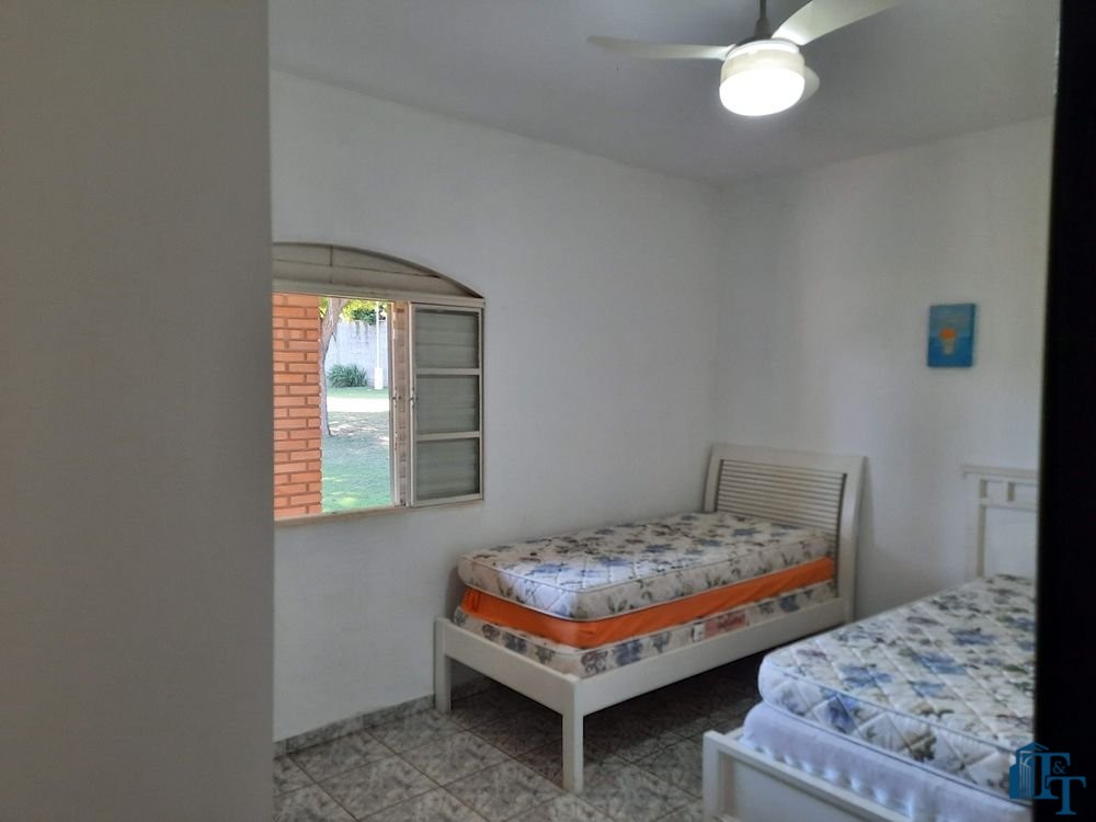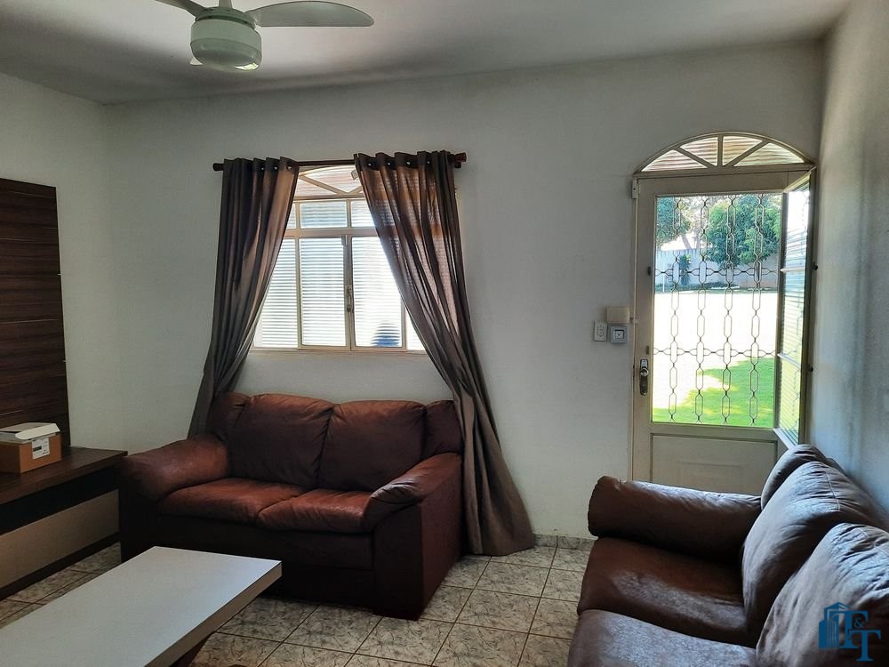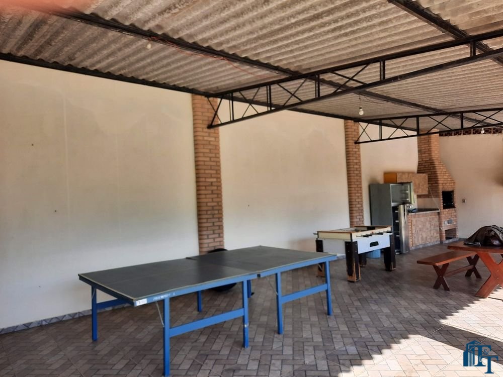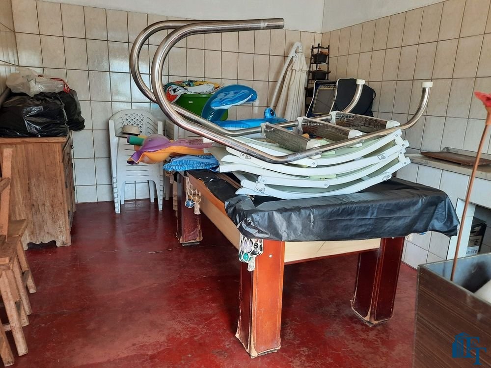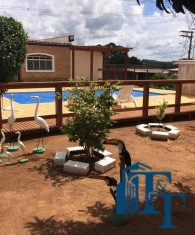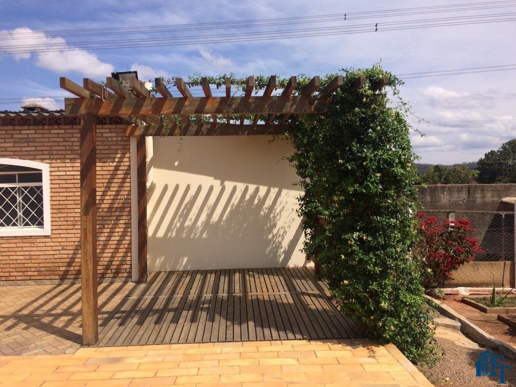 A casa é composta por 2 quartos, sala, cozinha, banheiro, lavanderia e garagem coberta para 4 carros. Na área externa (espaço coberto) e lazer, podemos observar pelas fotos uma linda área  gourmet com churrasqueira, pia e fogão a lenha, além de toda a mobília que será deixada no espaço, tais como: 2 mesas de madeira maciça e 4 bancos  do mesmo material, mesas de: pimbolim, ping-pong e bilhar, geladeira grande Eletrolux, 2 espreguiçadeiras brancas  (para serem utilizadas no espaço da piscina),  banheiro para atender as necessidades da área externa,  Juntamente com este espaço, contamos também com cômodos fechados: um que compõem a área gourmet e outro que atualmente está sendo utilizado como depósito. Neste espaço, temos os seguintes objetos: fogão industrial,  mesa com bancos em madeira de demolição, máquina musical (Karaokê com jukebox e um botijão de gás, suporte para panelas de ferro, com 8 panelas, gril giratório churrasqueira e guarda sol (Ombrelone).  Piscina 4 X 8, em azulejo decorado (espaço coberto para bomba), com um charmoso pergolado em madeira. O revestimento do piso da piscina é de pedra mineira e como extensão ainda tem um  charmoso deck em madeira, em toda a lateral da piscina.
