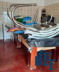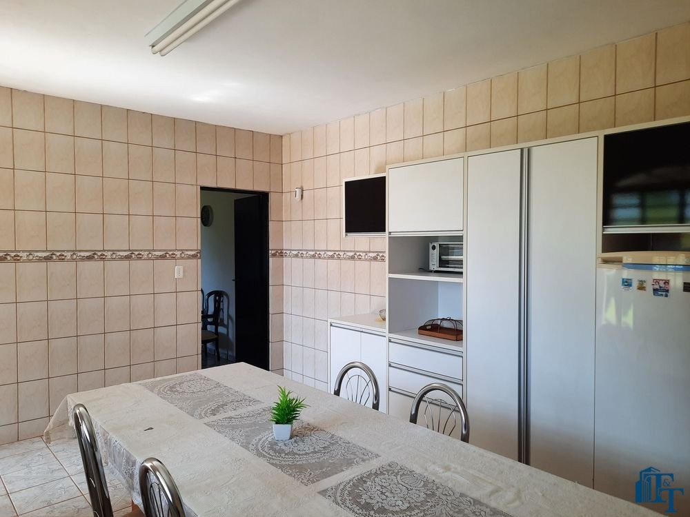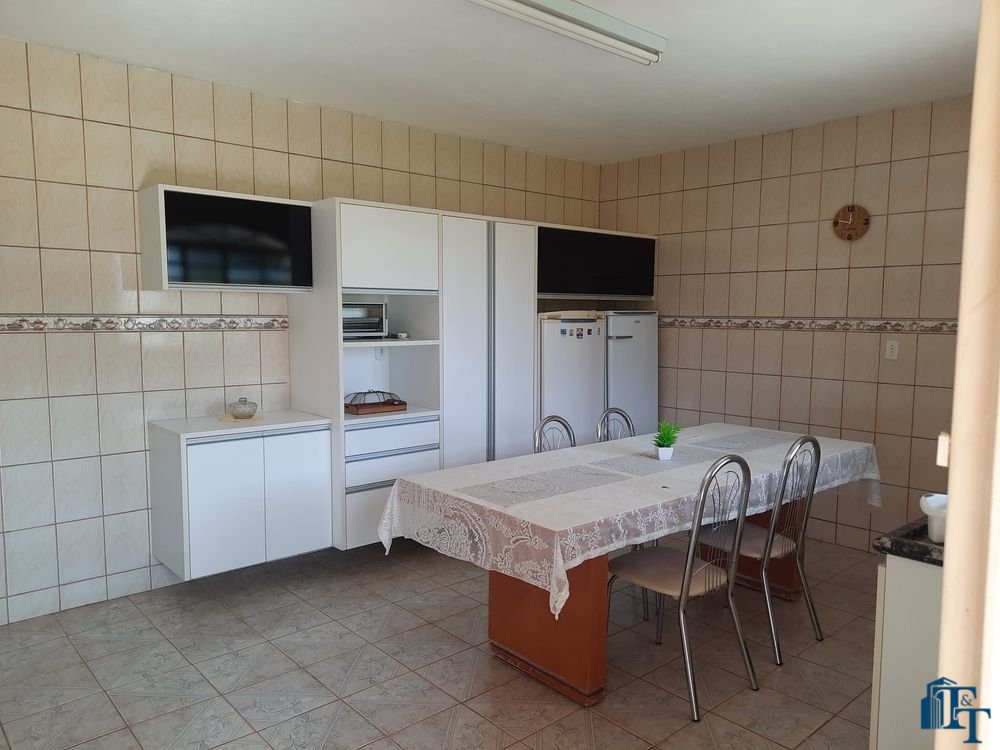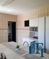 Além de fogão e a pia, armários embutidos, mesa em madeira para 8 lugares, geladeira grande da Dako e frizzer vertical.