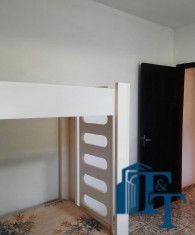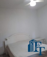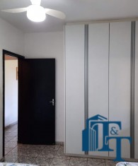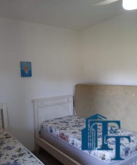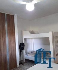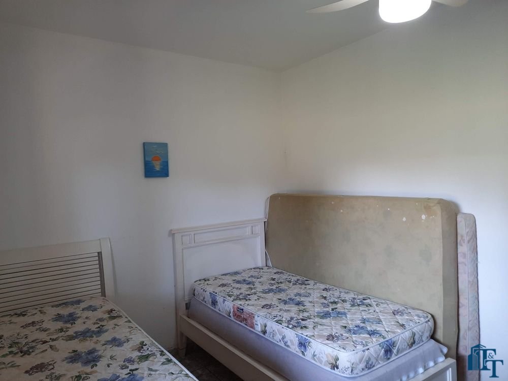 Duas camas de solteiro em madeira,  armário embutido e ventilador de teto.