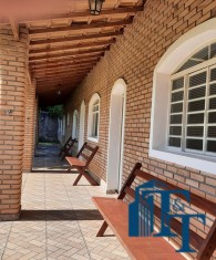 Na área externa podemos ver varanda em toda a frente da casa  temos ainda, três bancos de madeira maciça.