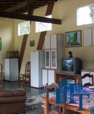 1. CASA PRINCIPAL, COM 178,55 M² DE MADEIRA MACIÇA/NAVAL, TODA AVARANDADA, COM 3 QUARTOS E 1 SUÍTE, 1 BANHEIRO, COZINHA AMERICANA, SALA DOIS AMBIENTES E LAREIRA, LAVANDERIA E GARAGEM COBERTA PARA 5 CARROS (LATERAL DA CASA). PÉ DIREITO ALTO NA SALA, ACABAMENTO TOTAL EM MADEIRA.