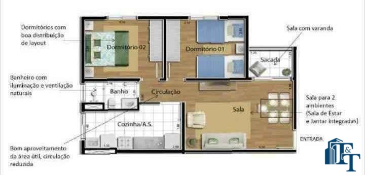 Venda de Apartamento no Condomínio Portal do Itá Residencial, com 50 m² com American House e pátio, 2 dormitórios, 1 banheiro, sala com sacada, cozinha, lavanderia, 1 vaga de garagem descoberta, mas, em frente ao apartamento, ou seja, fácil acesso).