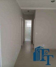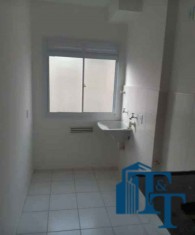 O acabamento é cerâmico nas áreas molhadas e piso vinílico nos outros ambientes do apartamento.