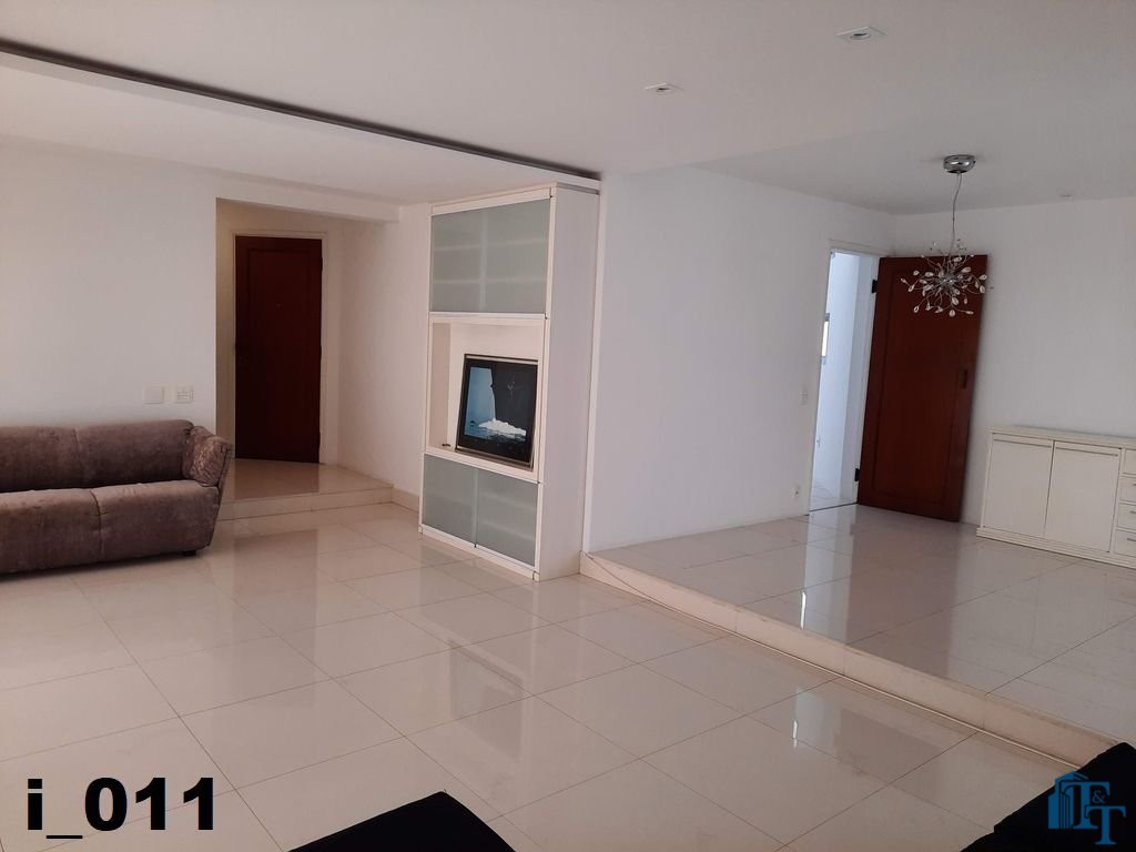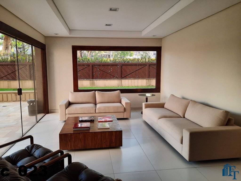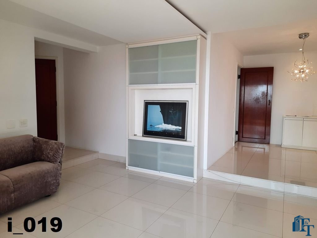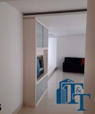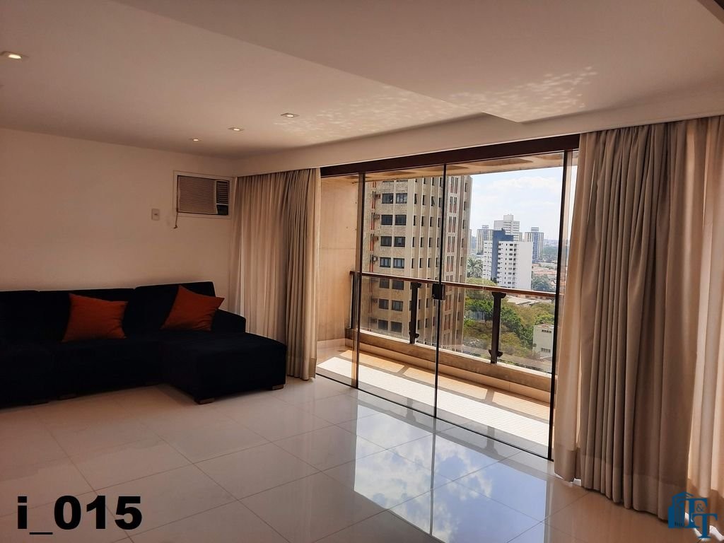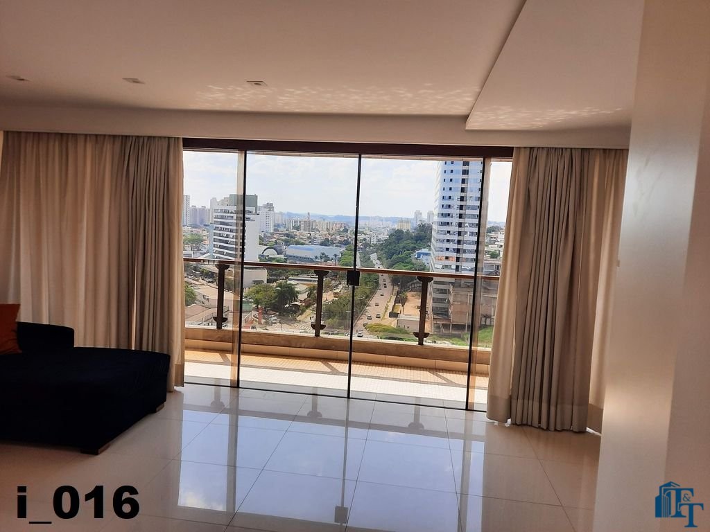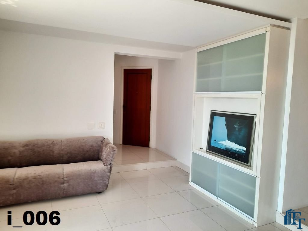 A belíssima sala estar é o destaque principal do apartamento, pois conta com a varanda 10 m² com fechamento de vidro em toda a extensão da sala e cortina de fino acabamento e claro com vista para a Avenida 9 de Julho. Além de extraordinariamente ampla, o revestimento do piso é de alto padrão de qualidade: porcelanato branco. A iluminação é diferenciada e especial com teto rebaixado e alternando em três fases de iluminação. Para compor este ambiente tem dois charmosos sofás e uma estante embutida de cor clara, harmoniosa e clássica;