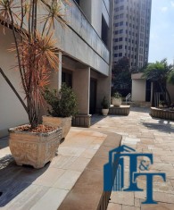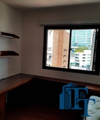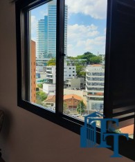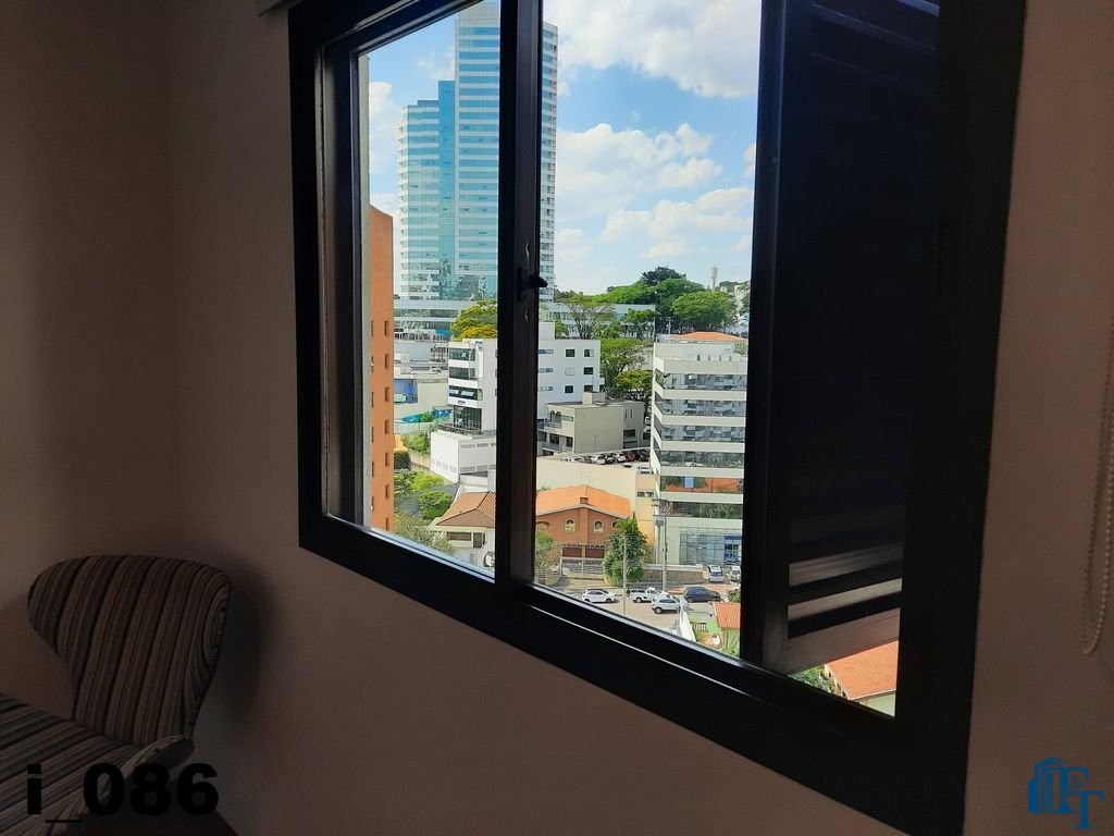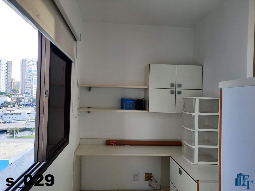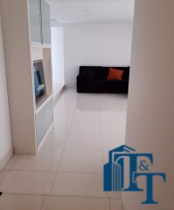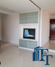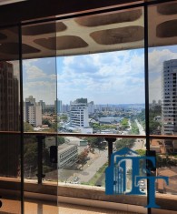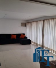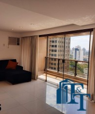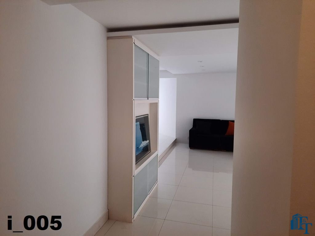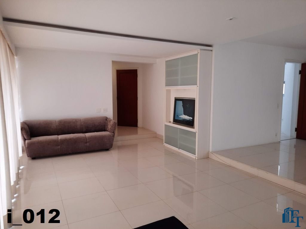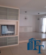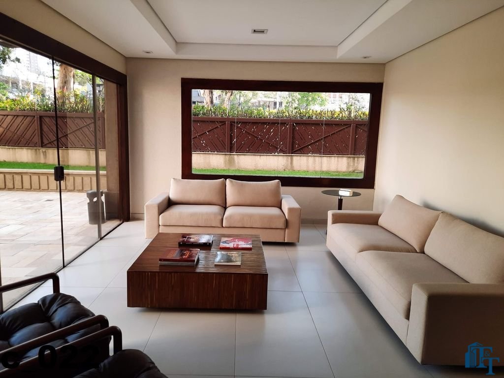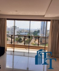 A belíssima sala estar é o destaque principal do apartamento, pois conta com a varanda 10 m² com fechamento de vidro em toda a extensão da sala e cortina de fino acabamento e claro com vista para a Avenida 9 de Julho. Além de extraordinariamente ampla, o revestimento do piso é de alto padrão de qualidade: porcelanato branco. A iluminação é diferenciada e especial com teto rebaixado e alternando em três fases de iluminação. Para compor este ambiente tem dois charmosos sofás e uma estante embutida de cor clara, harmoniosa e clássica;