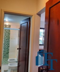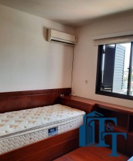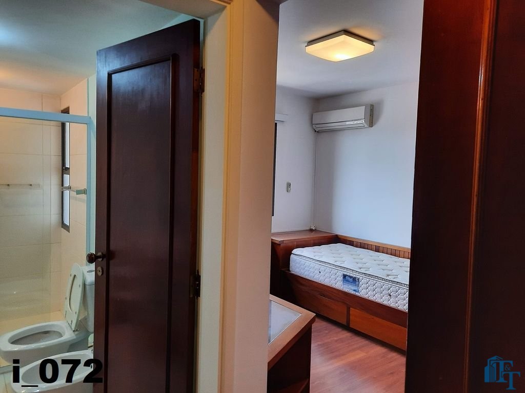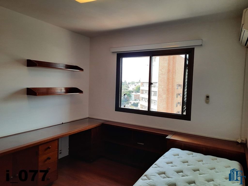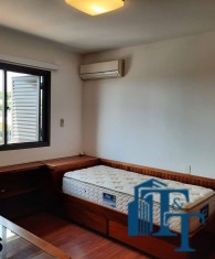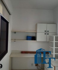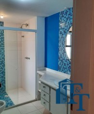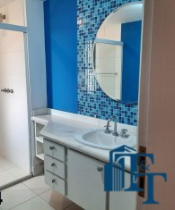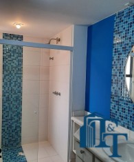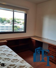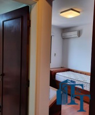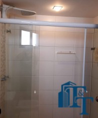 Dois dormitórios amplos e um banheiro que serve estes dois quartos, isolados por uma porta, são os primeiros ambientes da área íntima. O revestimento do piso para as áreas secas é o laminado na cor mogno. A mobília existente são: móveis embutidos de madeira imbuia, tais como: primeiro dormitório bicama e colchão, bancada de estudo, armário (madeira maciça) e no segundo dormitório o que muda é apenas a casa do tipo com gavetas e o resto dos móveis seguem o mesmo padrão do primeiro; O revestimento piso do banheiro que serve estes dormitórios é em cerâmica e o azulejo das paredes é de alta qualidade com detalhes em pastilha azul na área de banho e na parede da pia. O ambiente está pronto para o uso e conta com pia em mármore branco com gabinete e um belíssimo espelho redondo, box de vidro blindex e chuveiro;