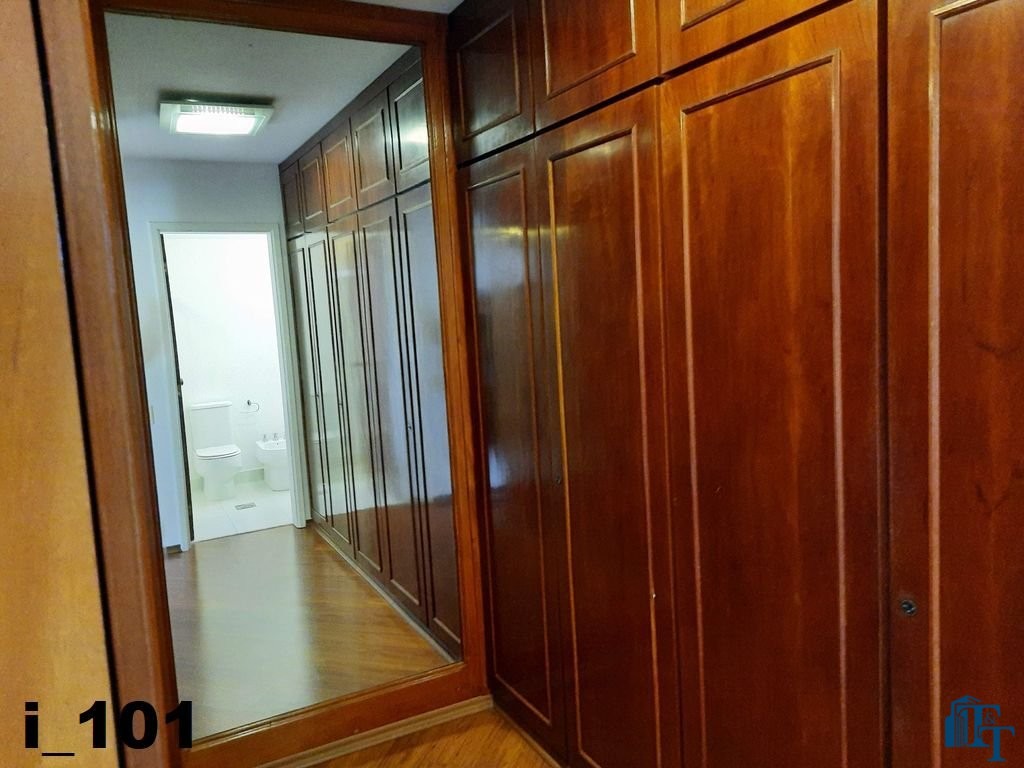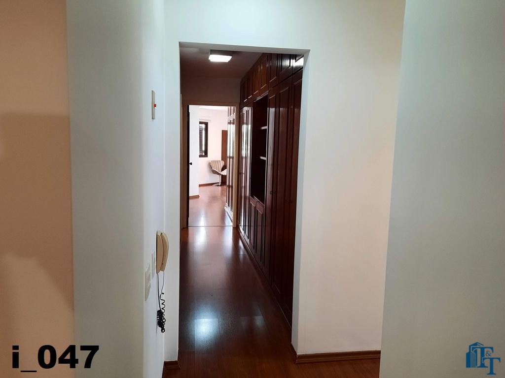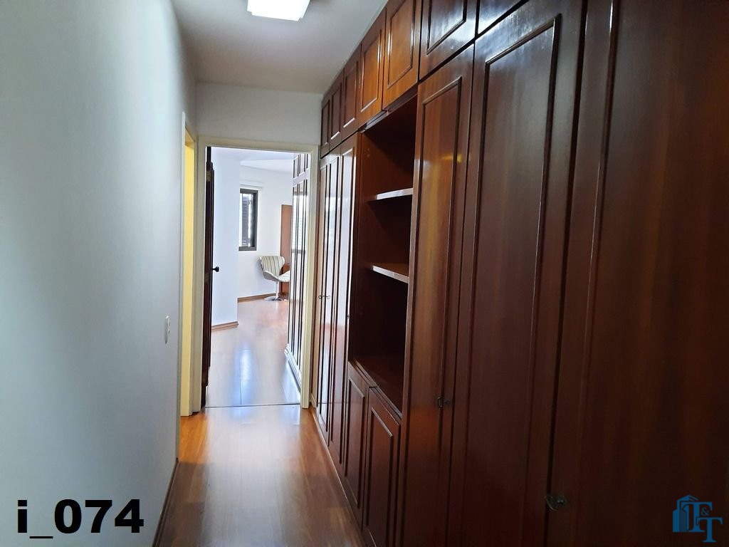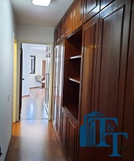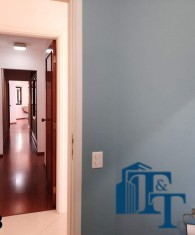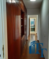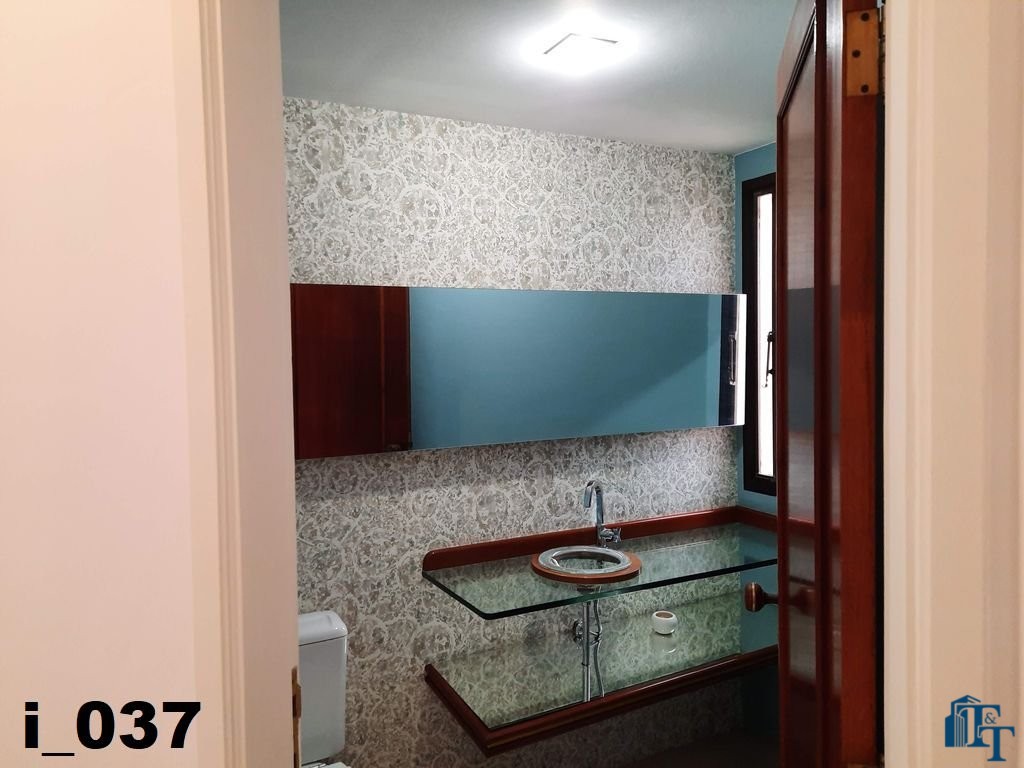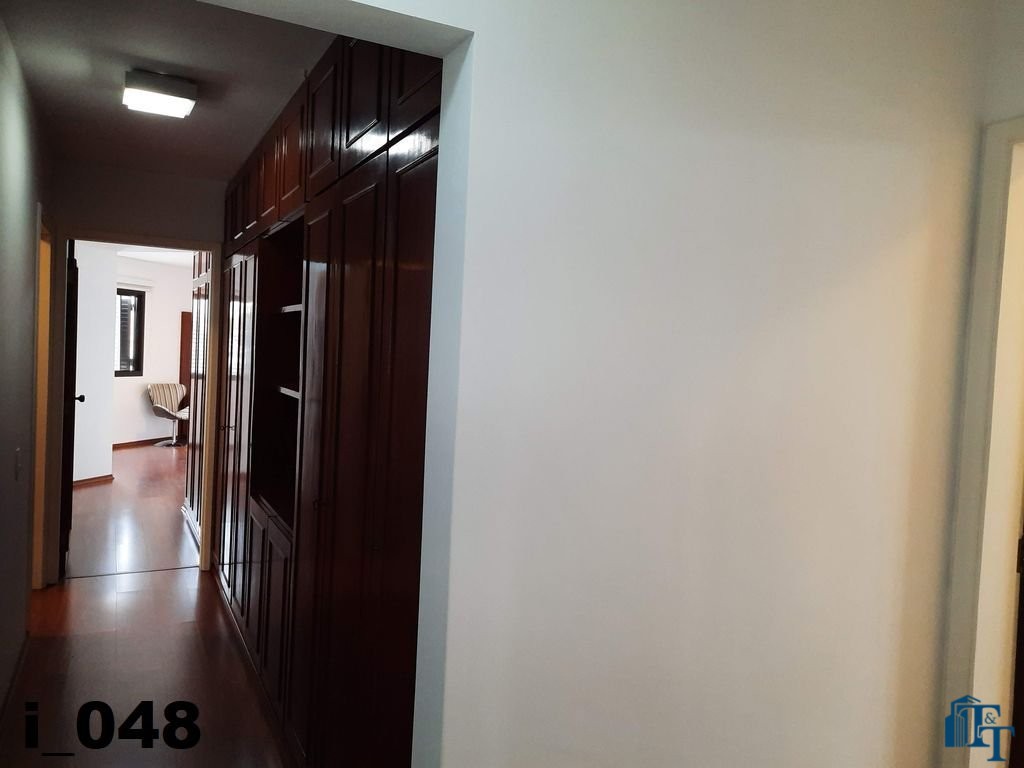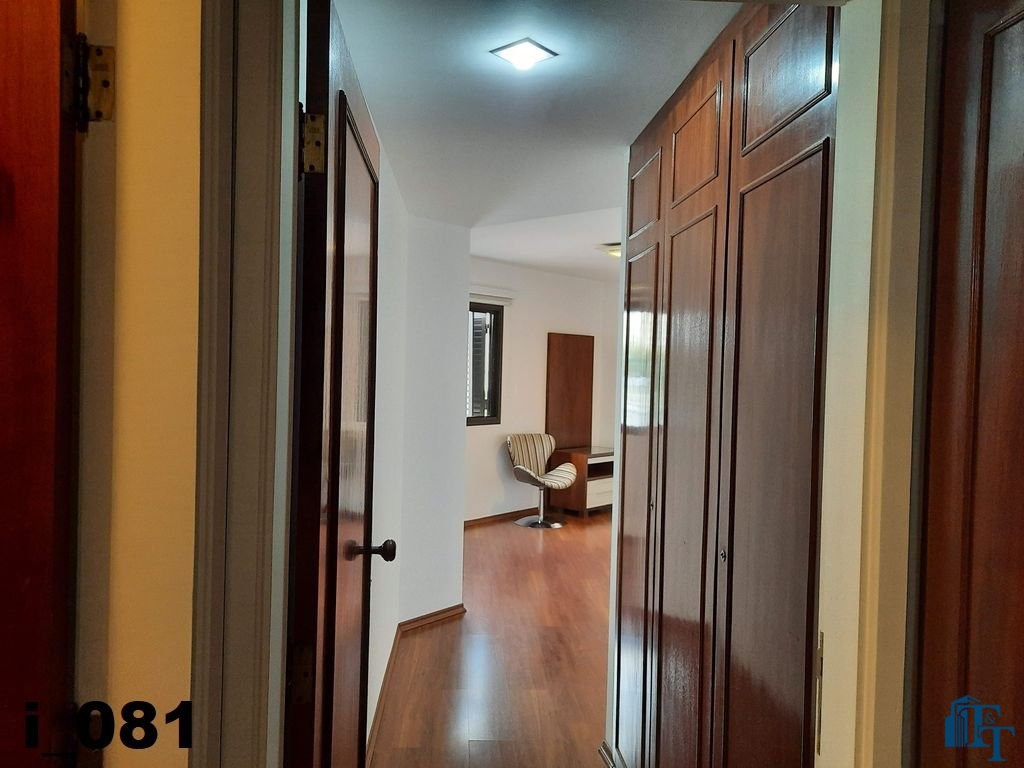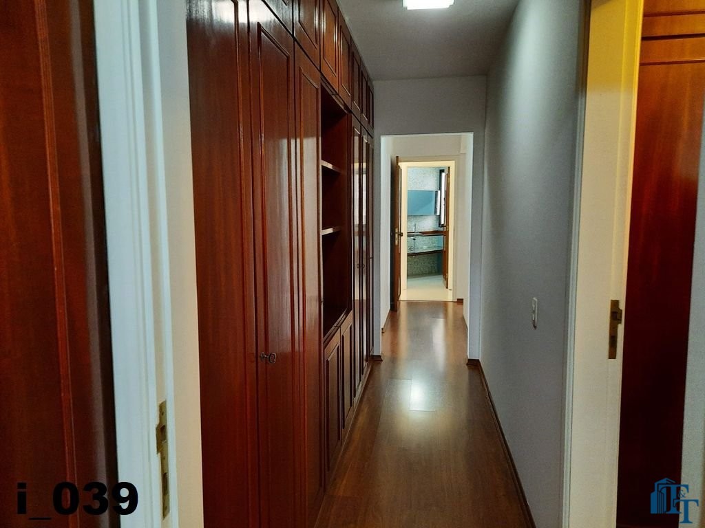 O revestimento do piso das salas é de porcelanato branco e das áreas molhadas, tais como: banheiros, copa, cozinha, despensa, lavanderia e suíte da área de serviço é cerâmico de excelente qualidade. E nas áreas íntimas: dormitórios das suítes, corredores e sala íntima o revestimento do piso é laminado na cor mogno, o que oferece conforto e sofisticação a cada ambiente. As paredes de todos os ambientes foram pintadas com cores harmônicas e a iluminação é adequada e como decoração belíssimos lustres, spot de luz, luminárias convencionais e pendentes de luz, enfeitam e compõem cada ambiente. Cortinas instaladas na sala principal (estar) e de jantar isolam estes ambientes oferecendo sofisticação e requinte. Em todos os dormitórios e ambientes armários compõem os ambientes e estão prontos para a perfeita utilização. As portas de entrada ao apartamento e internas são em madeira maciça e as janelas são de alumínio de excelente qualidade (chapa dupla) na cor bronze, janelas modelo camarão dos dormitórios permitem a abertura com amplitude do vão das janelas. Em destaque, o fechamento em vidro blindex entre a sala de estar e a varanda 10 m², oferecem muito conforto e sofisticação incalculável ao apartamento. Nos amplos banheiros e lavabo: revestimentos em pastilhas, box em vidro blindes, detalhes em espelhos em cortes circulares, gabinetes foram planejados deixar estes ambientes prontos para o uso com conforto para os moradores. Além de todo conforto, privacidade, utilidade e sofisticação mencionada, entre os ambientes amplos e funcionais corredores fazem a perfeita ligação aos ambientes. Permanecerá no apartamento os móveis embutidos citados, inclusive a enorme estante em madeira maciça no corredor principal.