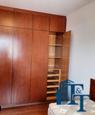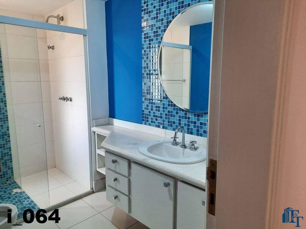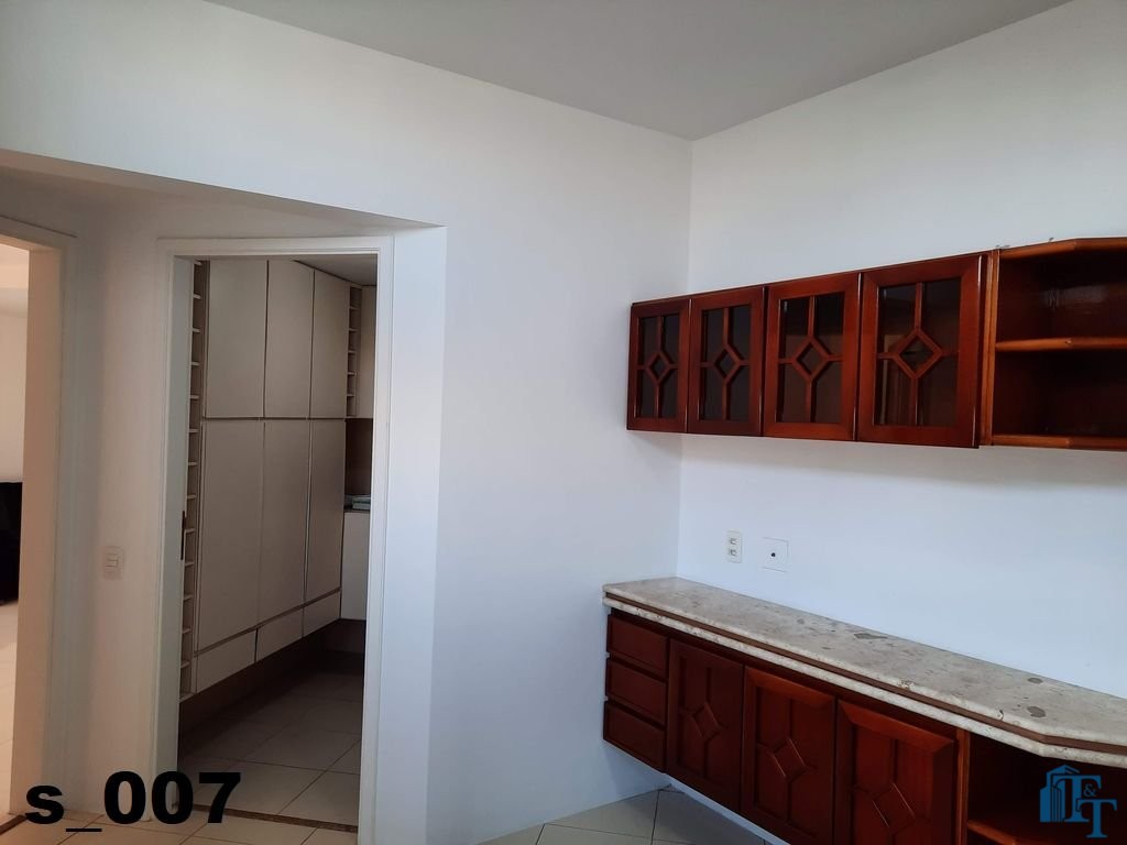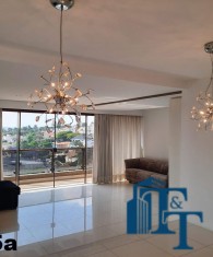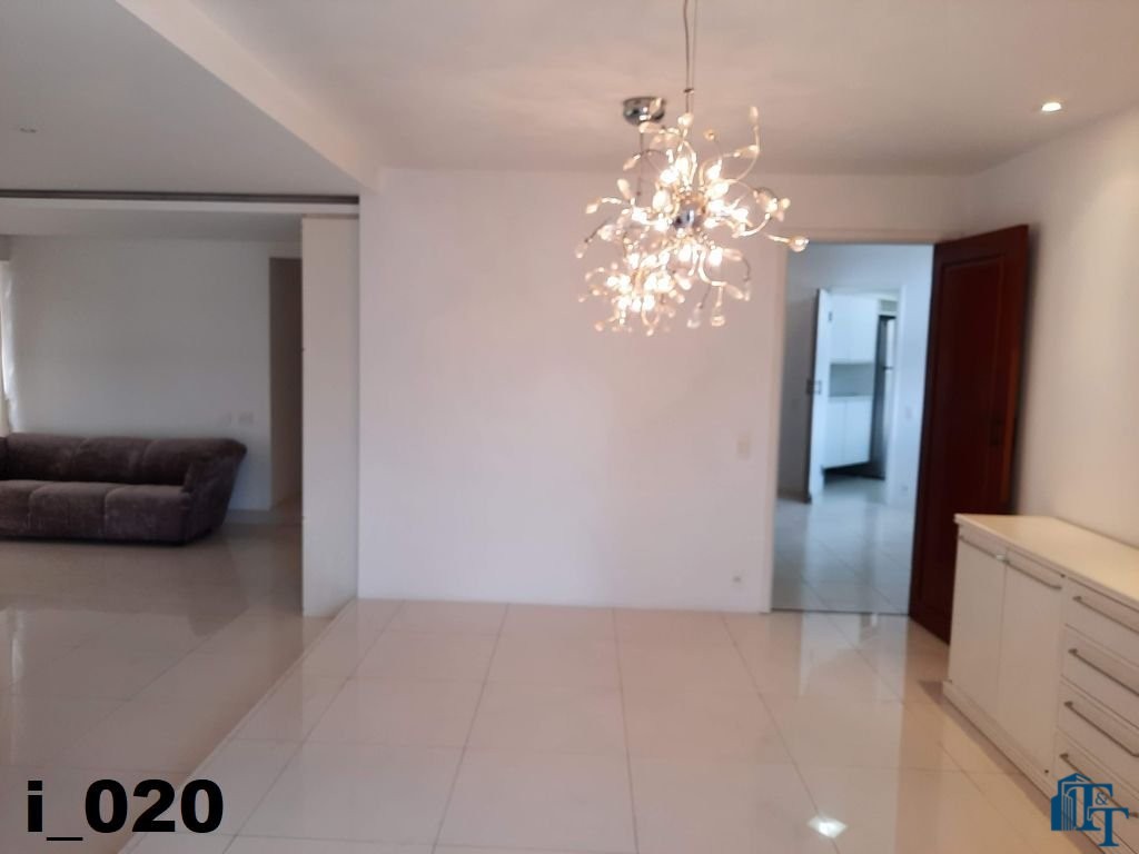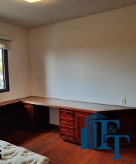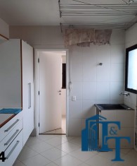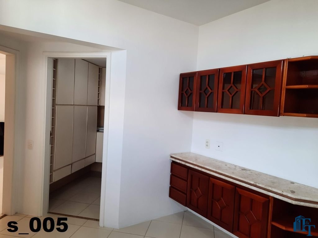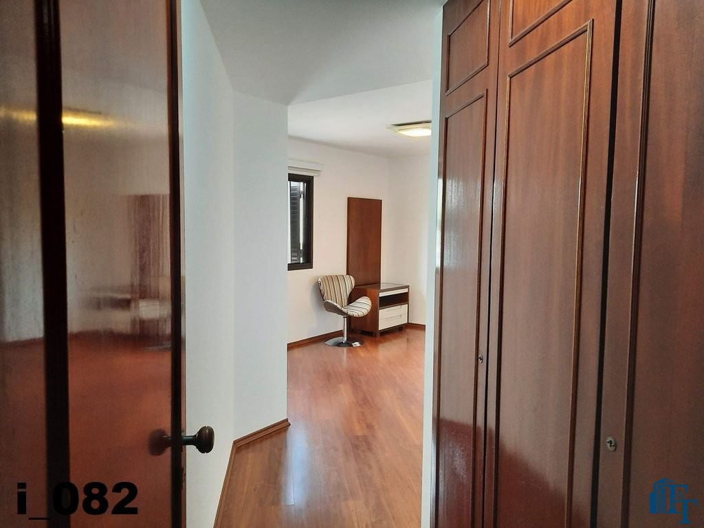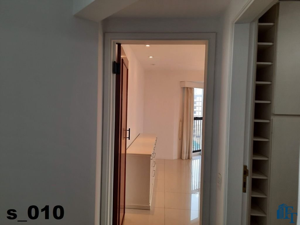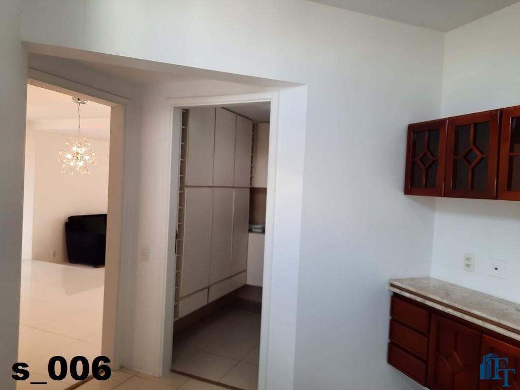 O revestimento do piso das salas é de porcelanato branco e das áreas molhadas, tais como: banheiros, copa, cozinha, despensa, lavanderia e suíte da área de serviço é cerâmico de excelente qualidade. E nas áreas íntimas: dormitórios das suítes, corredores e sala íntima o revestimento do piso é laminado na cor mogno, o que oferece conforto e sofisticação a cada ambiente. As paredes de todos os ambientes foram pintadas com cores harmônicas e a iluminação é adequada e como decoração belíssimos lustres, spot de luz, luminárias convencionais e pendentes de luz, enfeitam e compõem cada ambiente. Cortinas instaladas na sala principal (estar) e de jantar isolam estes ambientes oferecendo sofisticação e requinte. Em todos os dormitórios e ambientes armários compõem os ambientes e estão prontos para a perfeita utilização. As portas de entrada ao apartamento e internas são em madeira maciça e as janelas são de alumínio de excelente qualidade (chapa dupla) na cor bronze, janelas modelo camarão dos dormitórios permitem a abertura com amplitude do vão das janelas. Em destaque, o fechamento em vidro blindex entre a sala de estar e a varanda 10 m², oferecem muito conforto e sofisticação incalculável ao apartamento. Nos amplos banheiros e lavabo: revestimentos em pastilhas, box em vidro blindes, detalhes em espelhos em cortes circulares, gabinetes foram planejados deixar estes ambientes prontos para o uso com conforto para os moradores. Além de todo conforto, privacidade, utilidade e sofisticação mencionada, entre os ambientes amplos e funcionais corredores fazem a perfeita ligação aos ambientes. Permanecerá no apartamento os móveis embutidos citados, inclusive a enorme estante em madeira maciça no corredor principal.