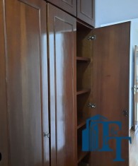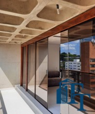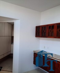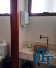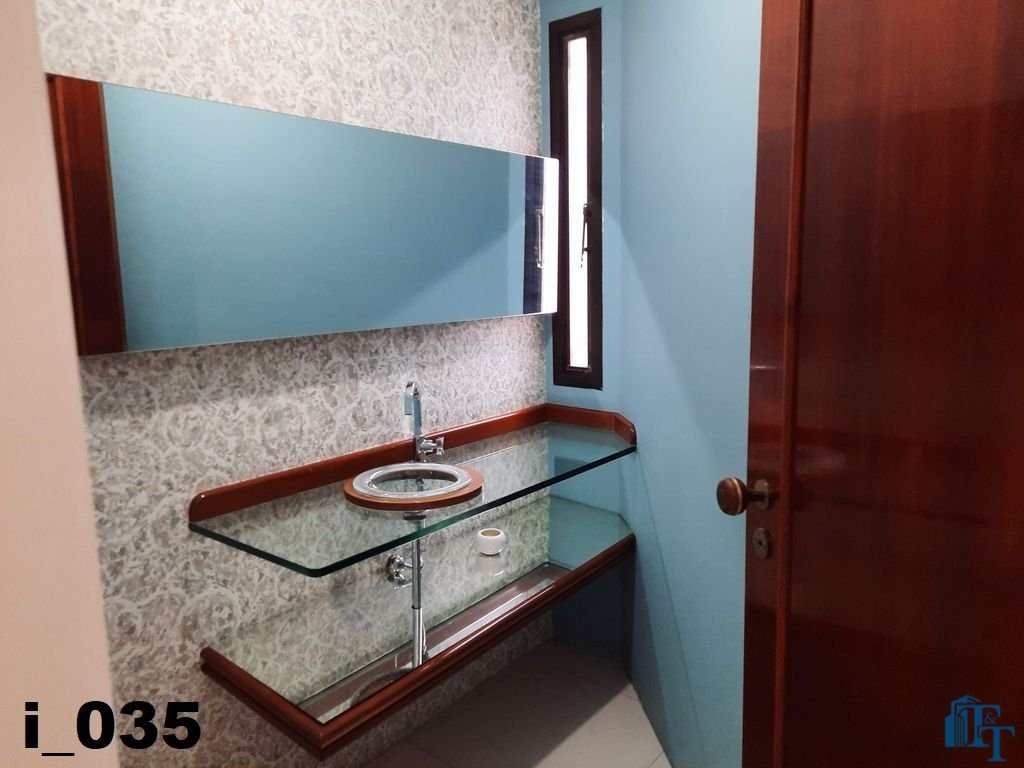 Pela sala de jantar, por uma porta, temos acesso área da copa, que também é um ambiente separado do restante dos cômodos, para compor este ambiente temos um armário com balcão em mármore e com as prateleiras em vidros de 5 mm e dois conjuntos de janelas em alumínio bronze para oferecer a perfeita ventilação e iluminação natural ao ambiente;