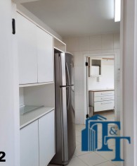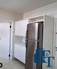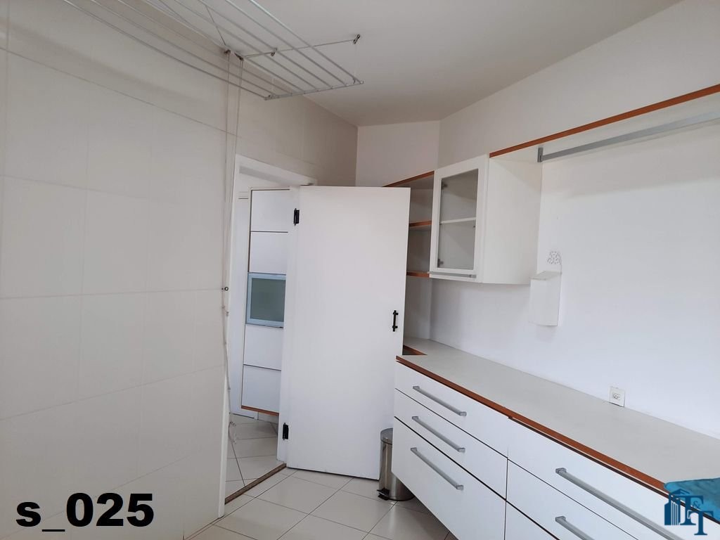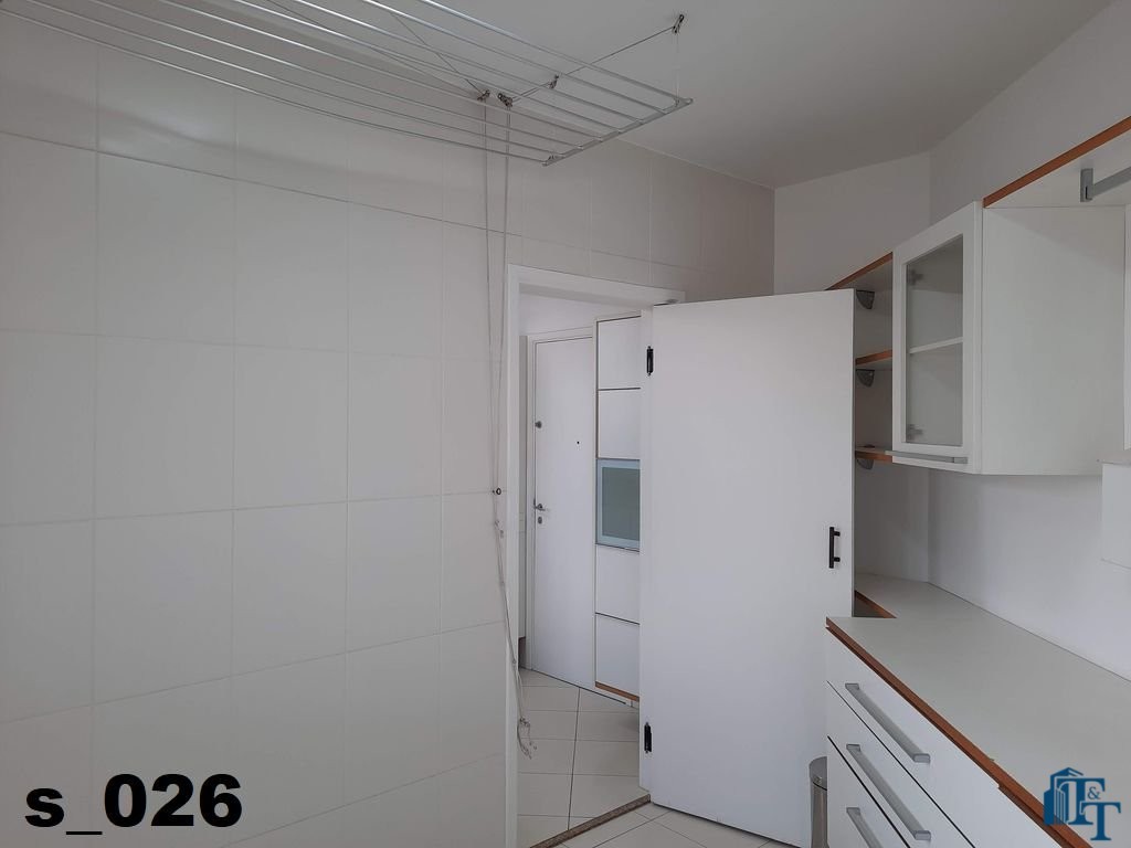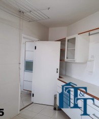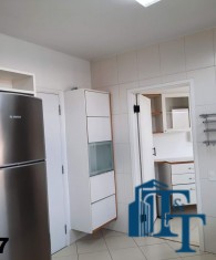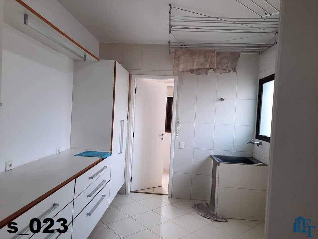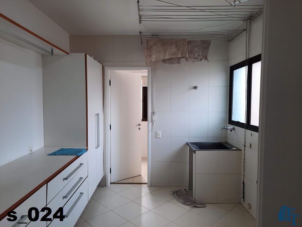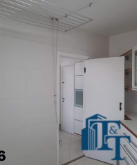 Em continuidade ao tour pela área de serviço, acessando pela cozinha entramos na ampla lavanderia, que está equipada com diversos armário na cor branca, tanque, 3 varais e muito espaço para atender todas as necessidades de serviço do apartamento, lembrando que a lavanderia é separada das outras áreas de serviço;