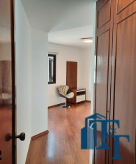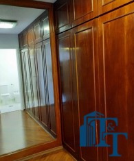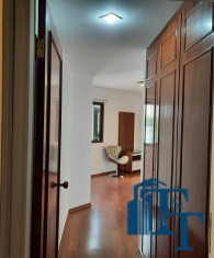 Seguindo o corredor vamos notar que uma enorme estante de livros que cobre toda a parede de fora a fora, do mesmo material dos dormitórios em madeira maciça;