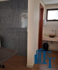 Salão de festas com WC feminino e masculino, piscina com deck, antessala (sala de estar) e escritório privativo (uso coletivo e individualizado), equipado com diversos sofás, mesas de apoio e no escritório uma mesa, para atendimento privativo, área gourmet com churrasqueira, jardins, bancos e muito paisagismo, portaria 24 horas, portão elétrico, cerca elétrica e câmara de segurança, tudo isso para dar segurança, muito conforto, privacidade e requinte aos moradores.
