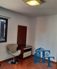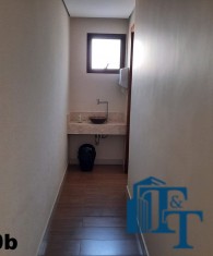 O próximo cômodo é uma charmosa sala íntima com banheiro, para atender a suíte master. Cômodo este que poderá ser decorado a gosto do próximo morador. Neste local, que é bem ventilado por janelas; atualmente tem duas cadeiras e um móvel estilo penteadeira, sem vidro que serve este cômodo;