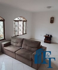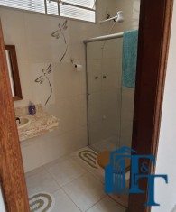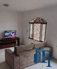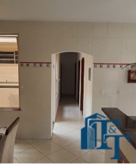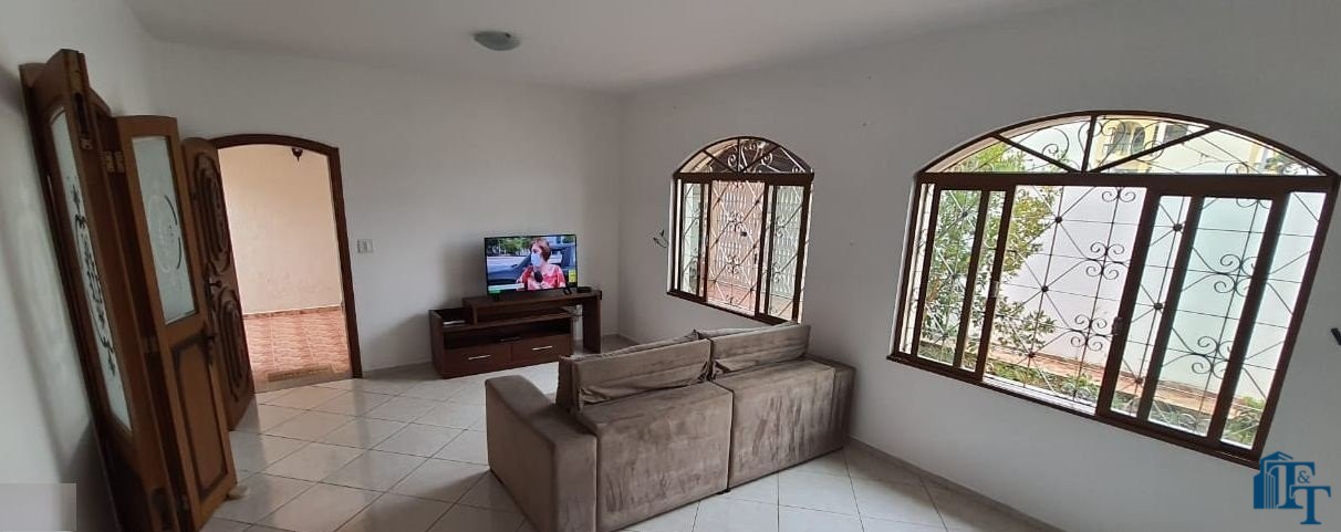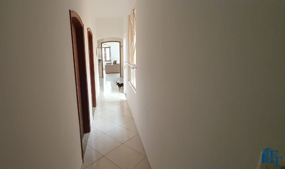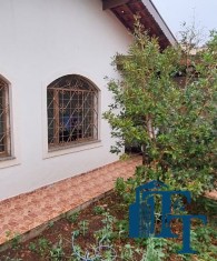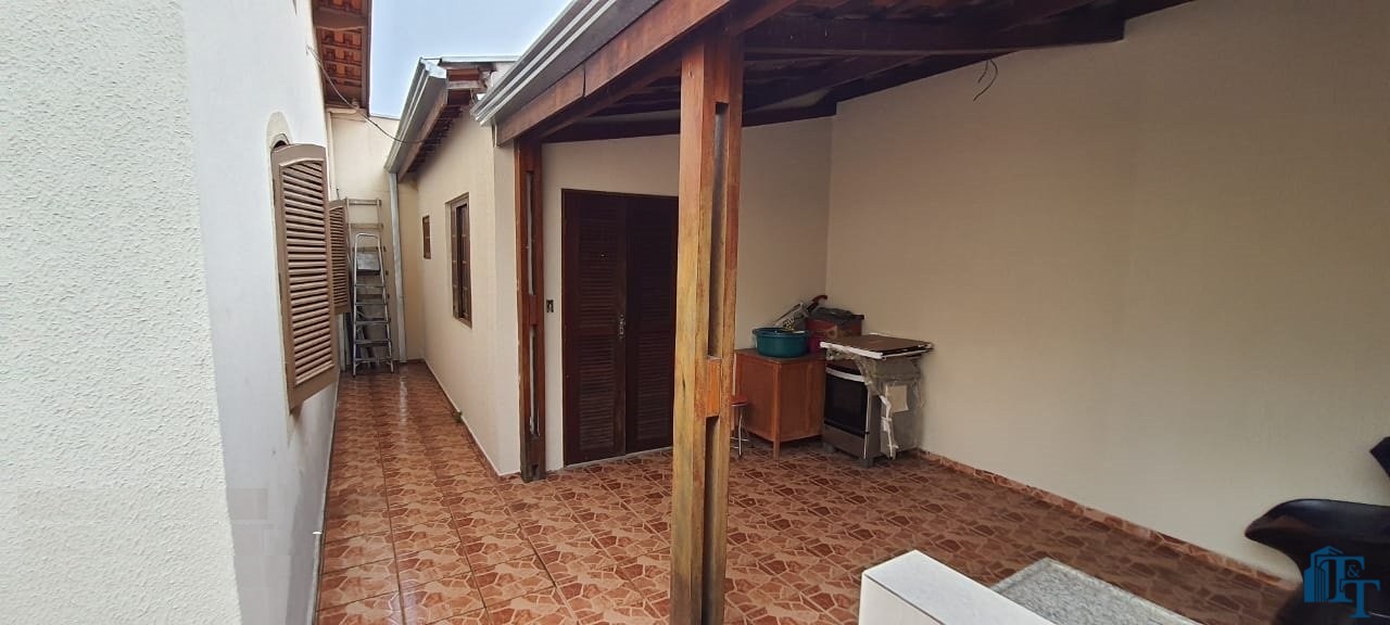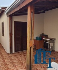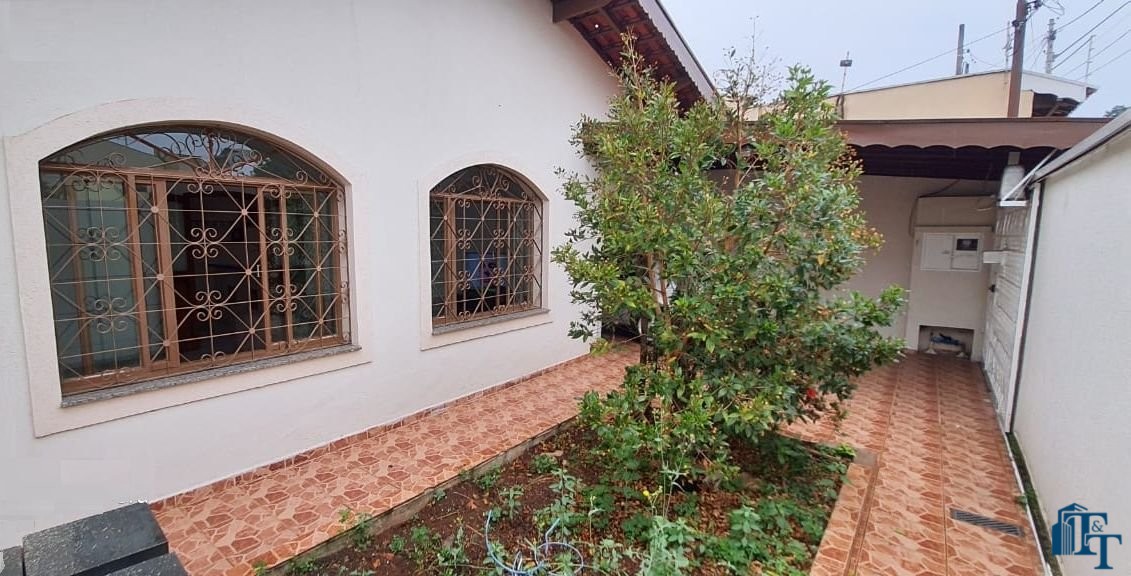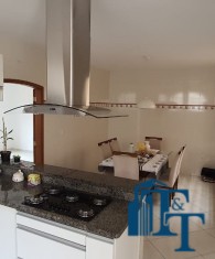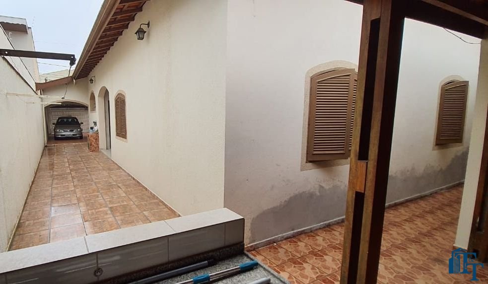 Casa térrea à venda, 3 dormitórios, sendo 1 suíte com guarda roupa embutido, jardim de inverno, 1 banheiro social, cozinha americana conjugada com a copa, tendo coifa de vidro, cooktop, forno embutido e armários planejados, sala dois ambientes, nos fundos, tem outra suíte, com uma cozinha aberta com pia... Mas, na verdade, nesse espaço coberto esta reservado para ser uma área gourmet. Garagem para até 3 carros, sendo 2 vagas cobertas e 1 descoberta. Na frente tem um jardim.