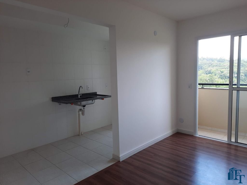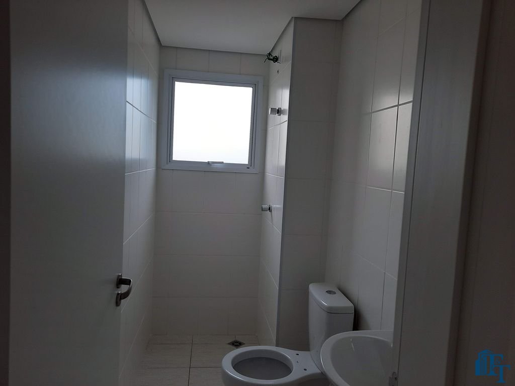 sala ampla (jantar e estar/ TV), com entrada social; banheiro social; cozinha; lavanderia; sacada; 1 vagas de garagem descoberta, mas determinada (devido ao condomínio ser novo, será definido em reunião de condomínio: a cobertura).