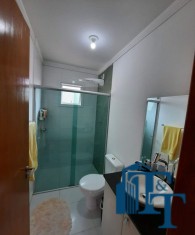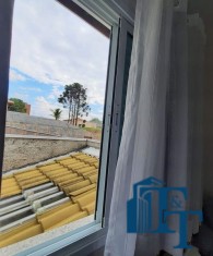 PISO SUPERIOR: O acabamento é em gesso para todos os ambientes e todos os dormitórios com piso laminado/madeira. Na suíte e banheiro foi colocado o box em vidro temperado. As portas balcão dos dormitórios da frente e as janelas são de alumínio duplo branco e as portas são de madeira.