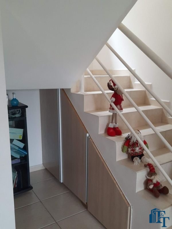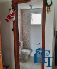 PISO TÉRREO: O acabamento da casa é de primeira, grafiato nas paredes da garagem/fachada, na sala foi feito gesso no teto, com sanca e iluminação de led com 3 modalidades, piso cerâmico. Da mesma forma foi utilizado o piso cerâmico para as áreas molhadas, tais como: cozinha, lavanderia e lavabo. Na copa/cozinha e lavabo, também foi colocado gesso no teto. A cozinha e lavabo tem planejados e na sala tem um rack (que poderá ser deixado pelo proprietário/será negociado no momento da venda).