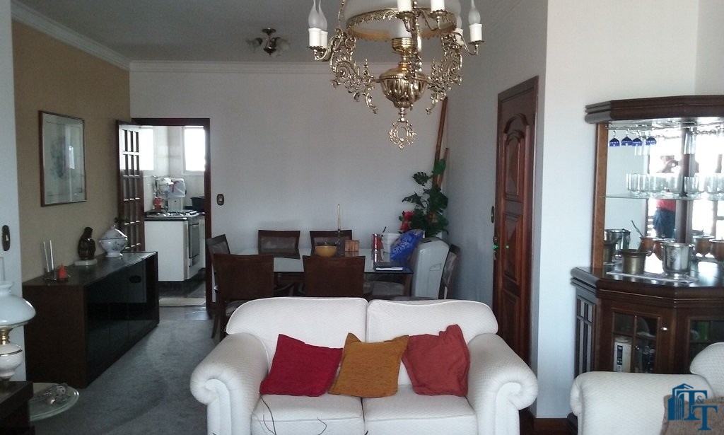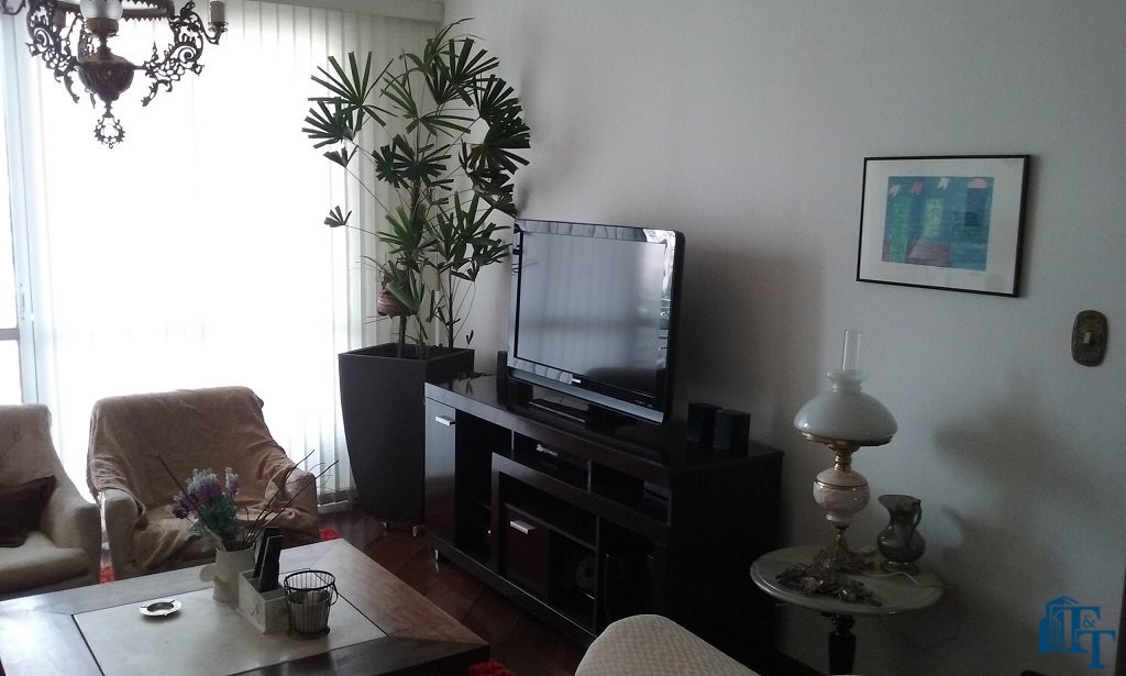 Apartamento mobiliado com sala de dois ambientes, terraço, lavabo, cozinha com armários planejados, área de serviço, banheiro para funcionários, escritório com armários, 3 quartos com armários embutidos, sendo uma suíte com closet, 2 banheiros, sendo 1 privativo da suíte e 2 garagens no subterrâneo.