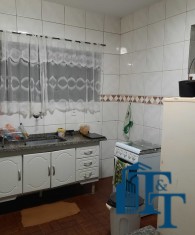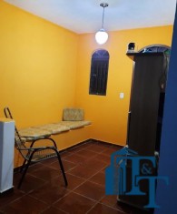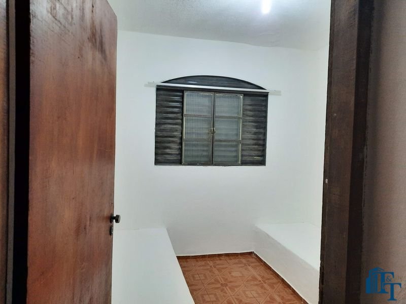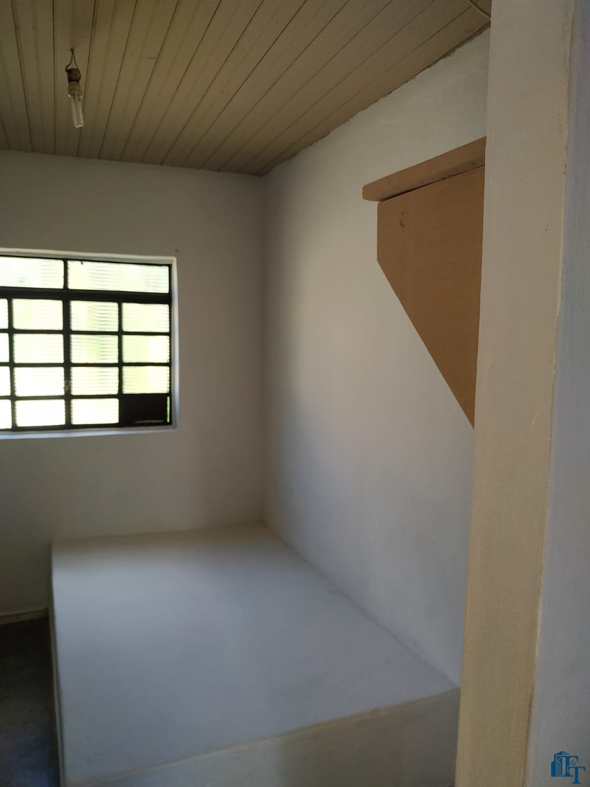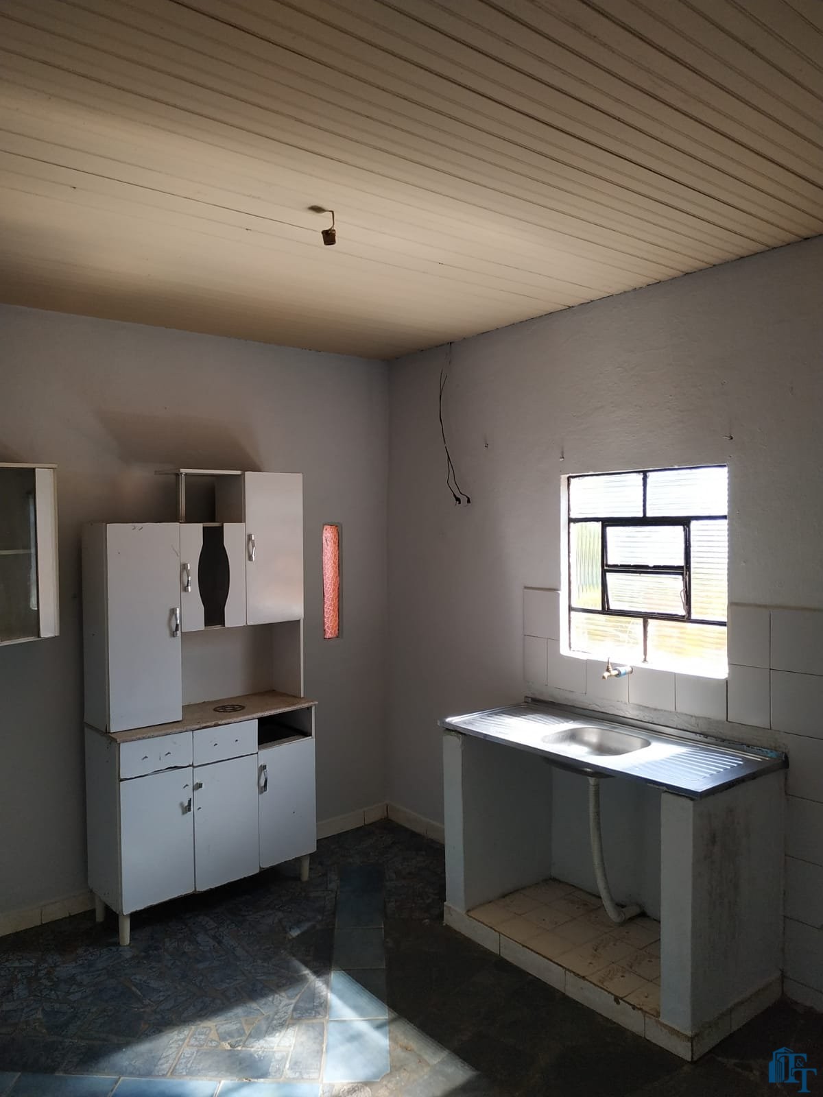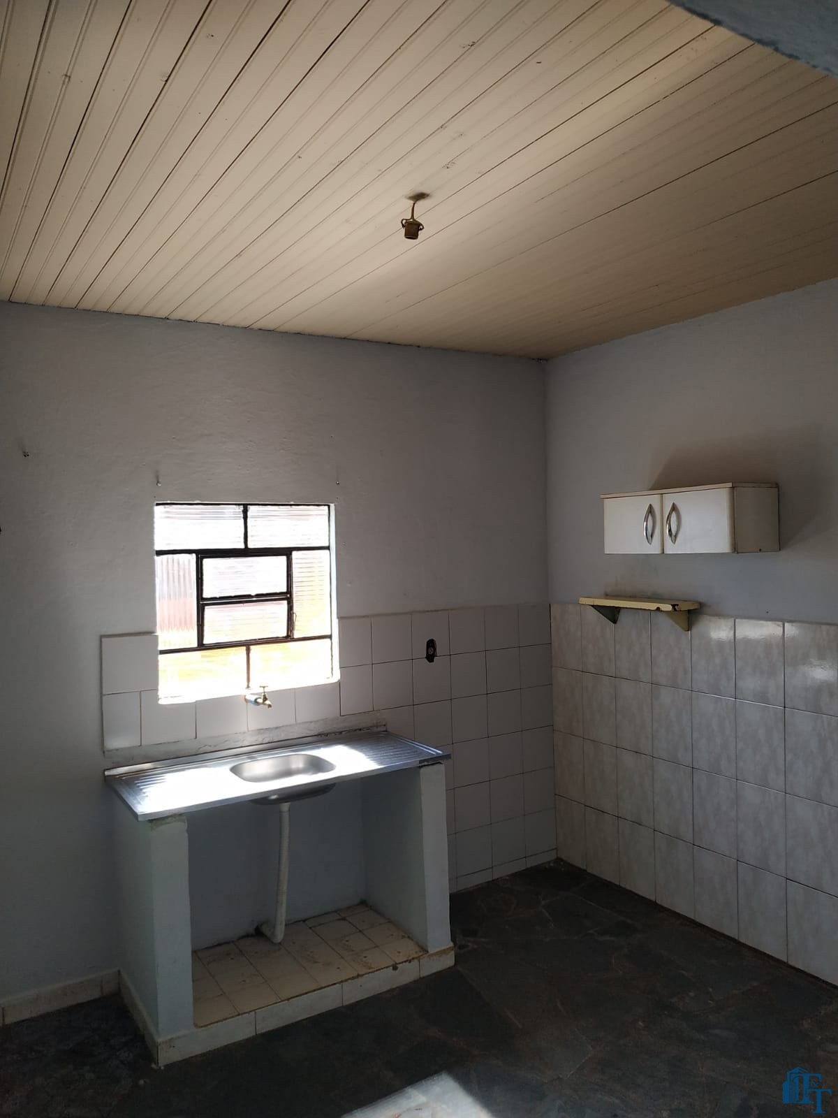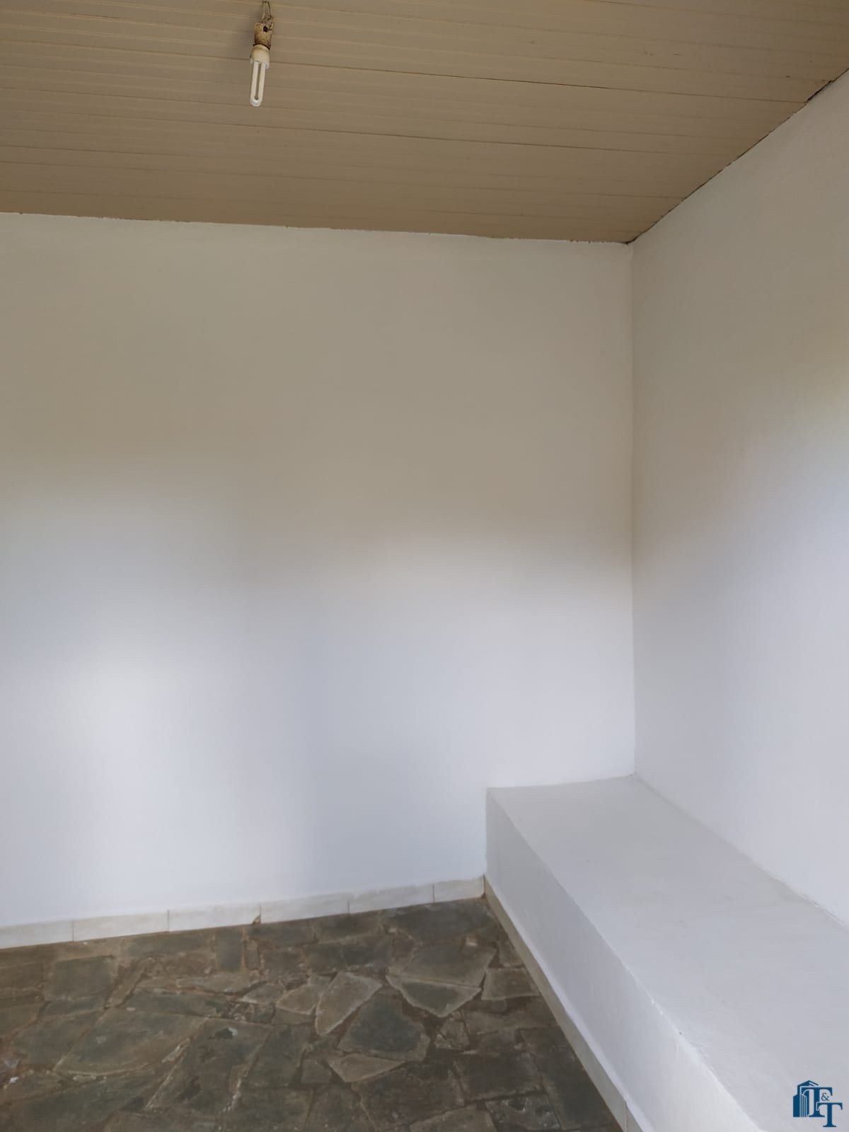 Casa de caseiro com quarto, sala, cozinha e banheiro, lavanderia coberta.