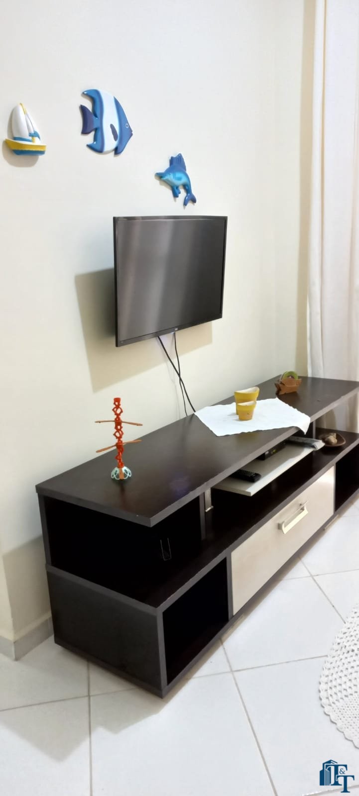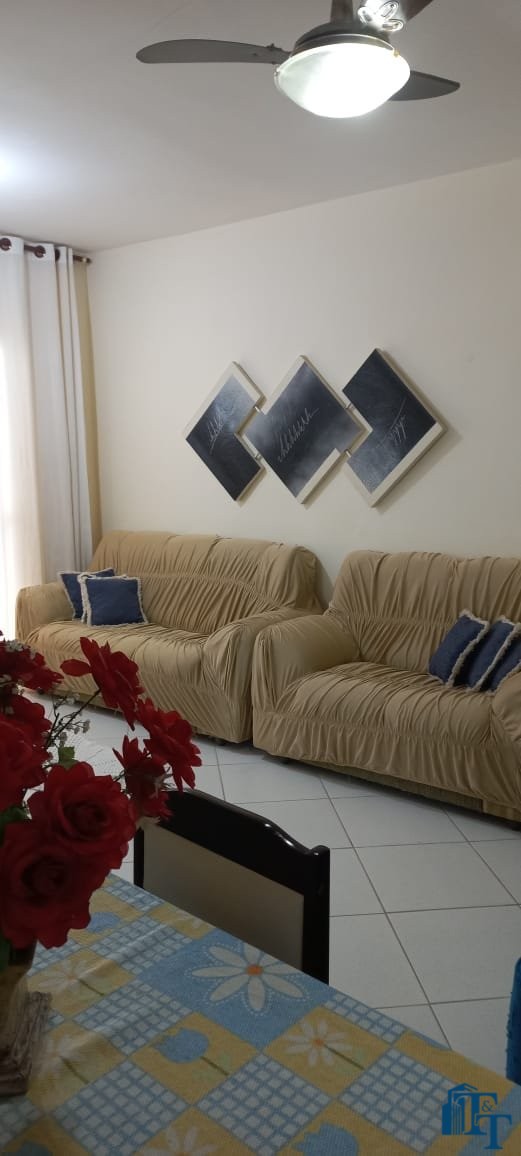 Apartamento à venda na Praia das Toninhas em Ubatuba, com 2 dormitórios, sala com 2 ambientes, cozinha e banheiro, 2 sacadas (uma no quarto do casal e outra na sala) e 1 vaga de garagem descoberta. Apartamento está mobiliado.